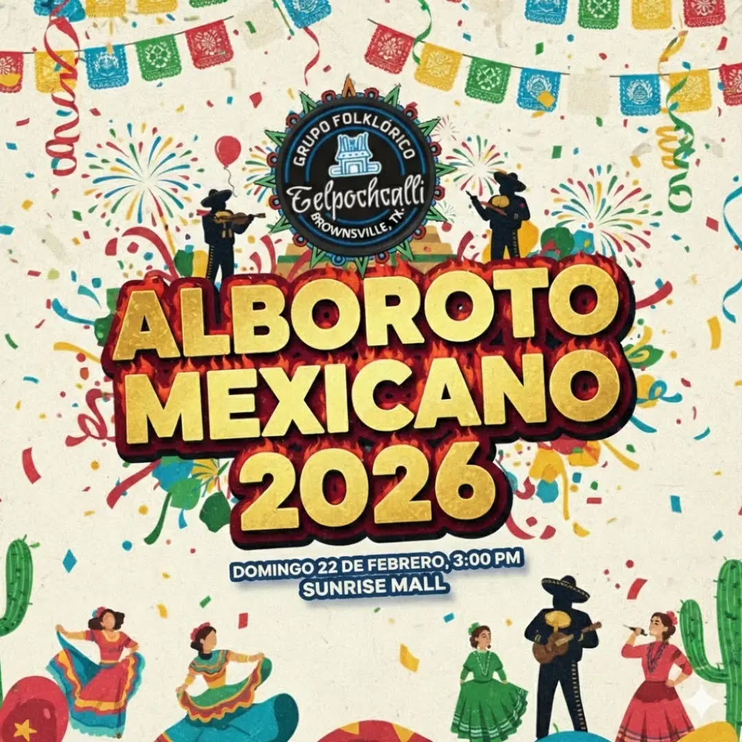 In celebration of Charro Days, Grupo Folklorico Telpochcalli brings the festive and traditional folklorico dances to the Sunrise Mall Food Court stage. Don't miss the beautiful performances on Sunday, February 22 at 3pm